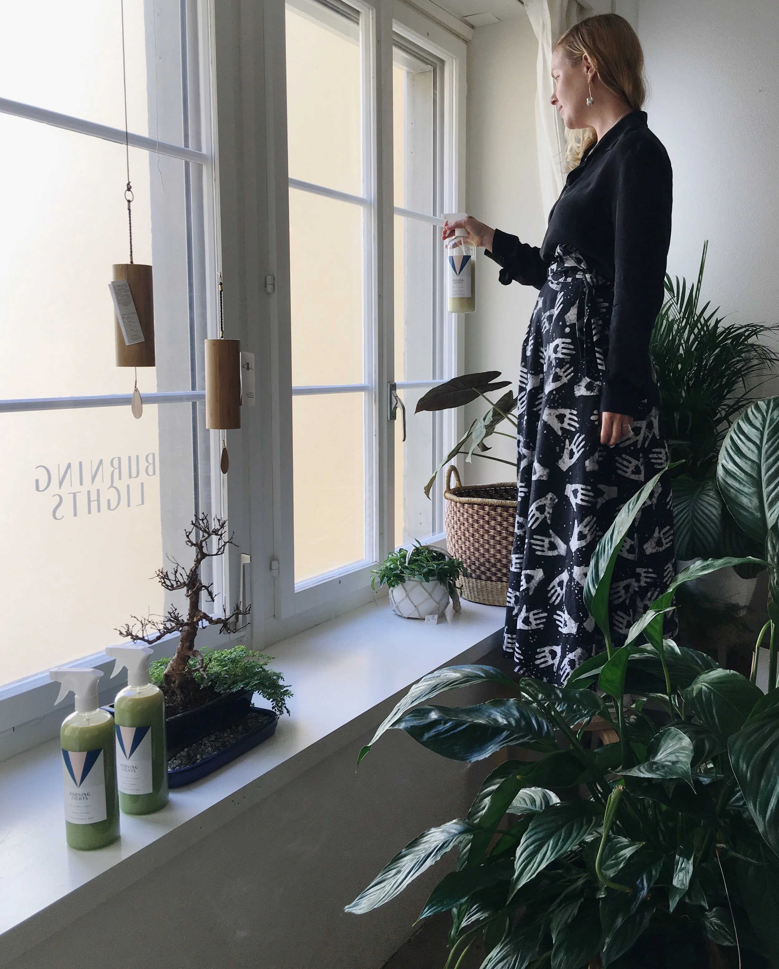 Sommerputz im Atelier mit unserem Bestseller Holy Mountain Organic Surface Cleaner, für Fenster, Holz und sogar als Fleckenentferner für Textilien geeignet. Und alles duftet nach Zierbelkiefer, Weihrauch und Zimt.